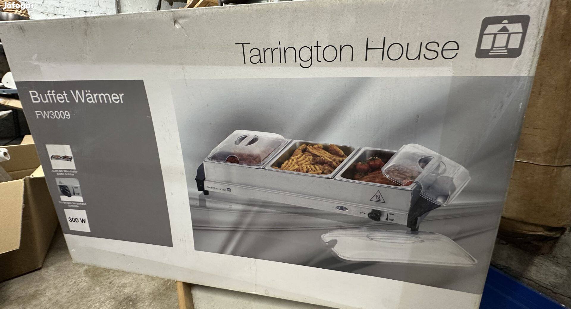 Új, gyári csomagolású Tarrington House büfé melegentartó, 3 darab GN 1/3 méretű, rozsdamentes acél edénnyel.