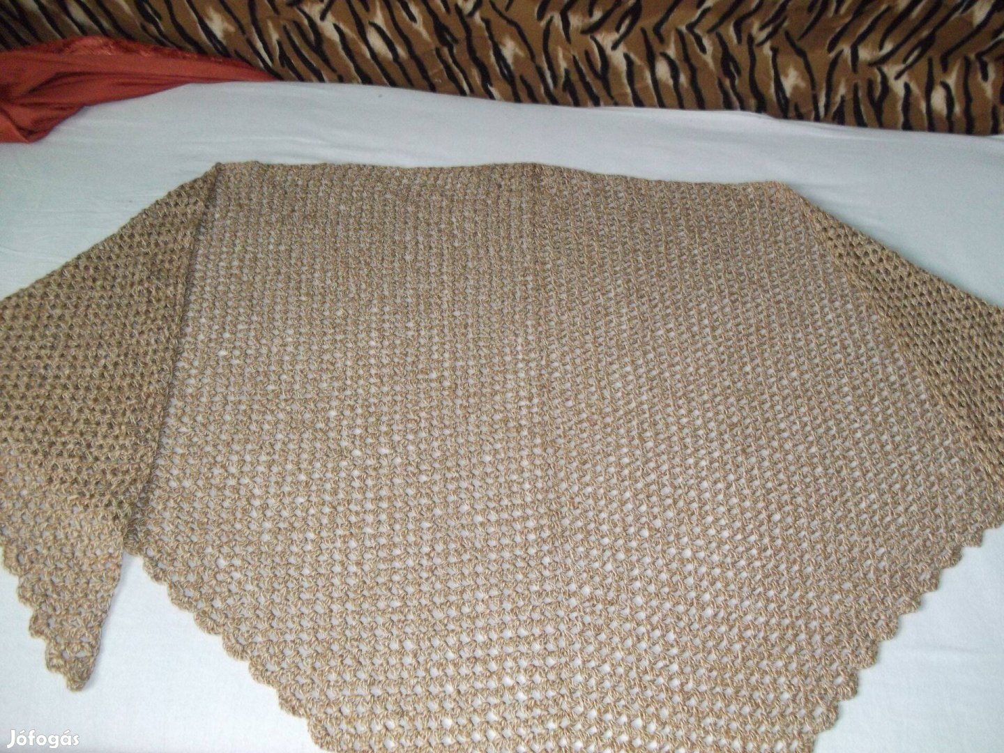 Eladó új, saját horgolású könnyű, szellős tavaszi- nyári kendő. Világos barna (bézs) és fehér 2 szálas (pamut, akryl) fonalból. 30 fokon kézzel mosható.