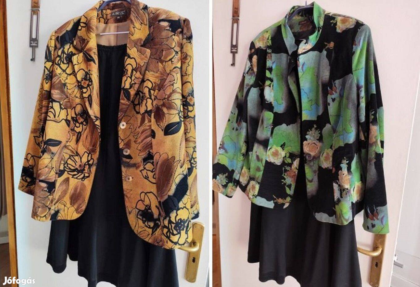 2) Zöld mintás blézer. Hossza: 63 cm, Ujja hossza: 63 cm.