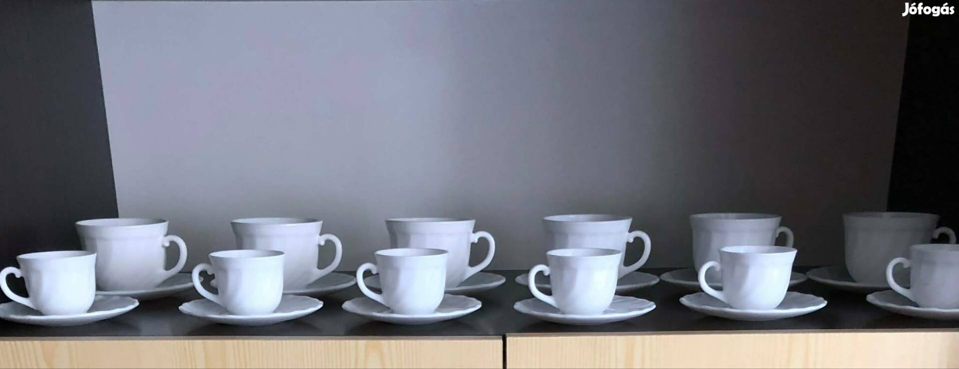 6 db jénai teás csésze és 6 db kávés csésze tányérokkal eladó külön is. Teas 3000 .- Ft, a kávés 2000.-ft.begyben 5000.-ft.