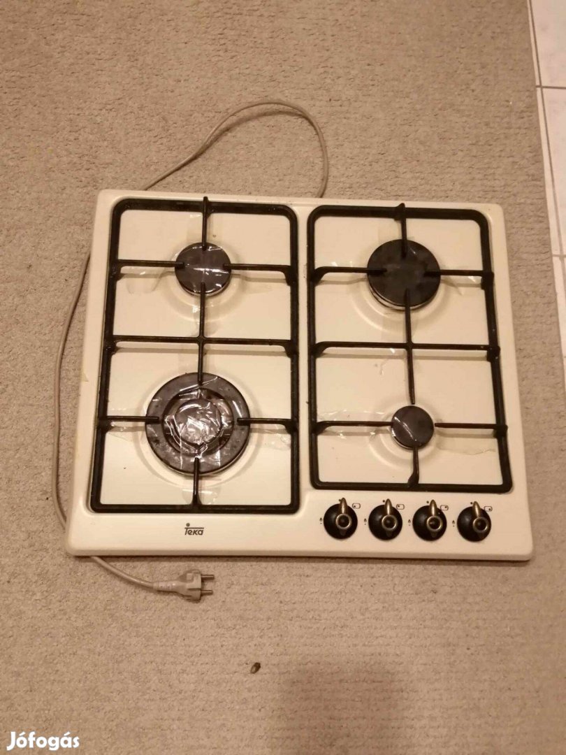Eladó egy újszerű, beépíthető 4 égős Teka gyártmányú gáz főzőlap bézs színű, elektromos gyújtással, földgázzal használható. Keveset használt, költözés miatt eladó. A legnagyobb égő dupla láng rózsás, Wok égő. Adok hozzá egy garnitúra tartalék forgató gomb készletet. Átvehető Budapesten, telefonon előre egyeztetett helyszínen és időpontban.