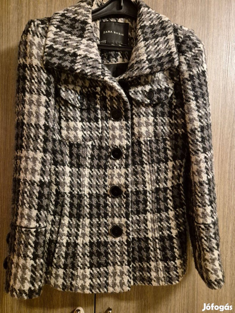 Hasznalt S-es, rovid fazonu, 2 zsebes, Zara szovetkabat 2000 Ft. Hossza 68 cm, ujja hossza 59 cm.