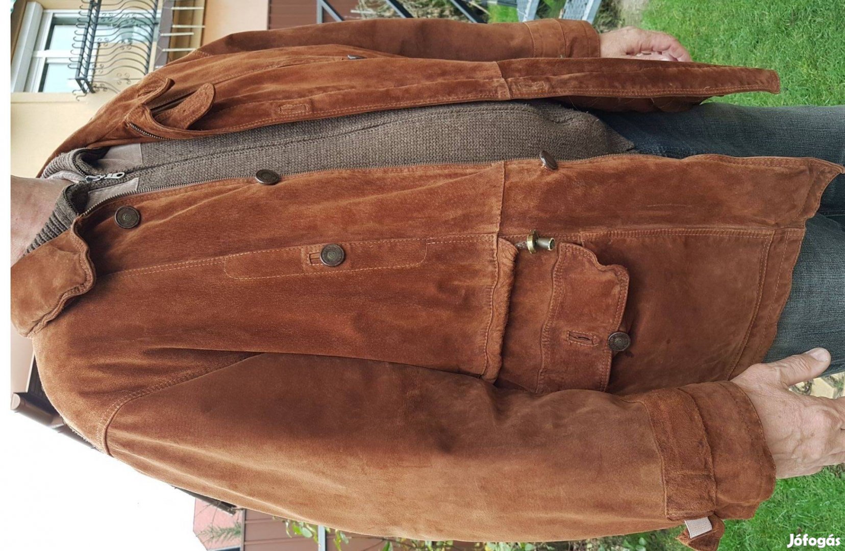 Télikabát bőr férfi velúr kabát barna 48 48-as