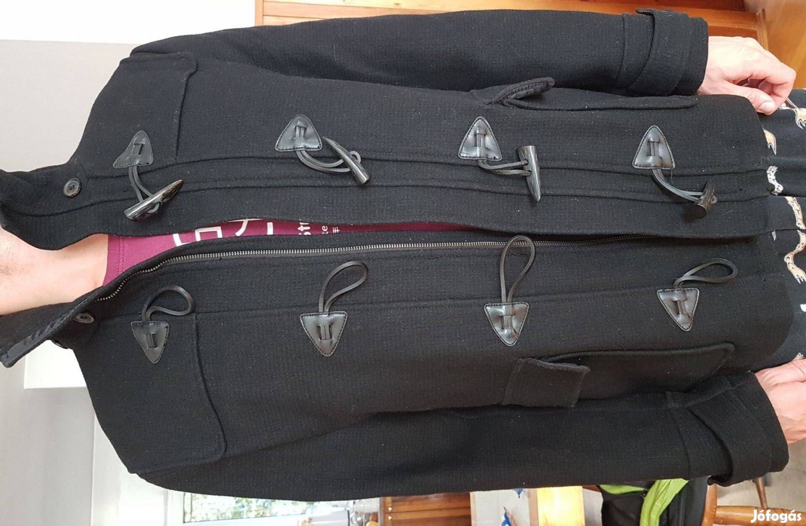 54-es fekete gyapjú férfi télikabát 7000 Ft-ért eladó.