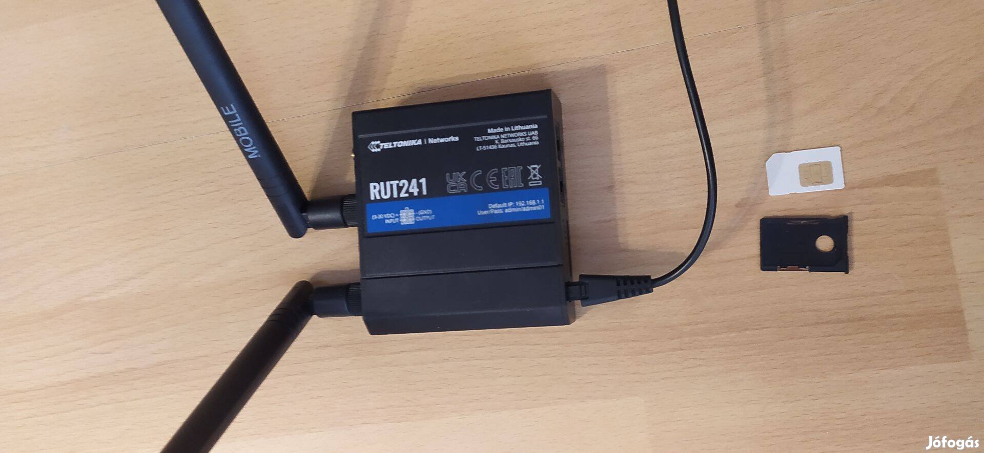 Tartozékok:Rut241,Tápegység Tápkebel csatlakozóval,2db Mobil antenna,wifi antenna nincs