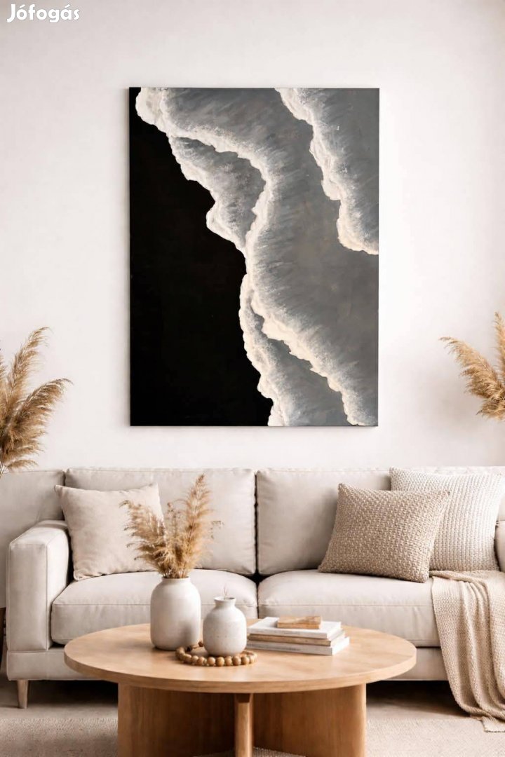 Egy darab 70x110 cm-es, kézzel texturált vászon, amely a hullámok természetes erejét és nyugalmát hozza be az otthonodba.