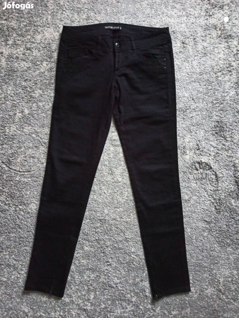 Terranova fekete farmernadrág fekete kövekkel díszítve S-es (36-os) méretű új állapotú 3800 Ft-ért eladó.