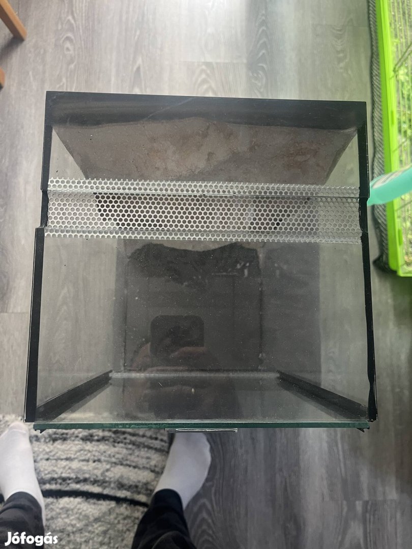 Eladó a képen látható 25x25x45 cm-es háttereuett terrárium,