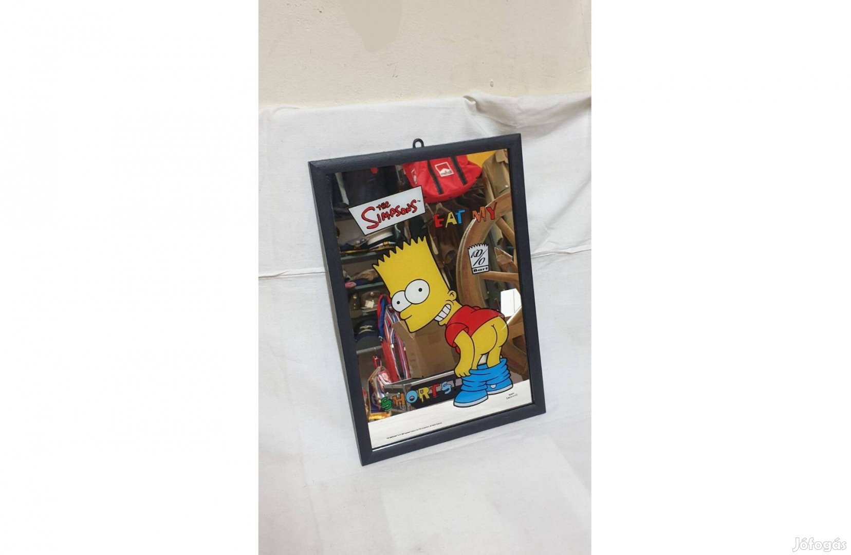 The Simpsons retró fali tükör. Eredeti licenszelt tárgy, 1999-ben gyártották (tükör alján láthatóak a jelzések). Elvileg valamilyen amerikai karnevál vásáron volt fődíj, mint nyereménytárgy. Fa hatású, fekete műanyag keretben kapott helyet. A tükrön Bart Simpson kapott helyet, pimasz grafikával, az egyik népszerű jelmondatával ("Eat my shorts"). Hátulján falra akasztási lehetőséggel. Mérete: ~32x22cm [kerettel együtt]. Képen látható jó állapot. Kifejezetten gyűjtőknek ajánlott darab!