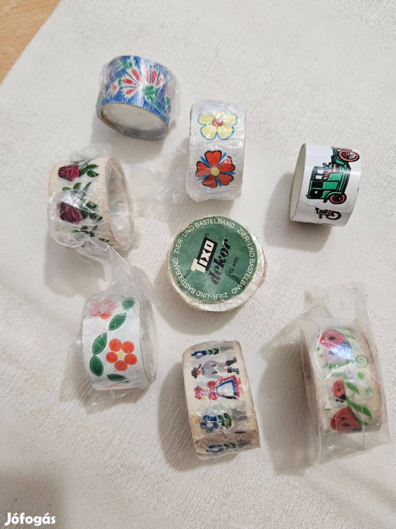 Eladóvá vált a korábbi évekből megmaradt színes mintás tixo ragasztó. Népi, zöldség, virág és más motívumos darabok. Az összes együtt 1300 Ft.