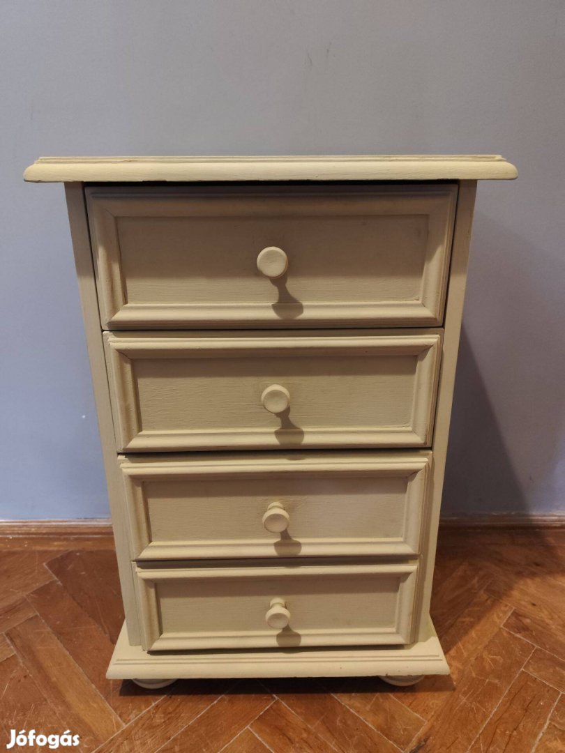 Eladó a képeken látható, 4 fiókos tojáshéjszínűre lefestett komód.