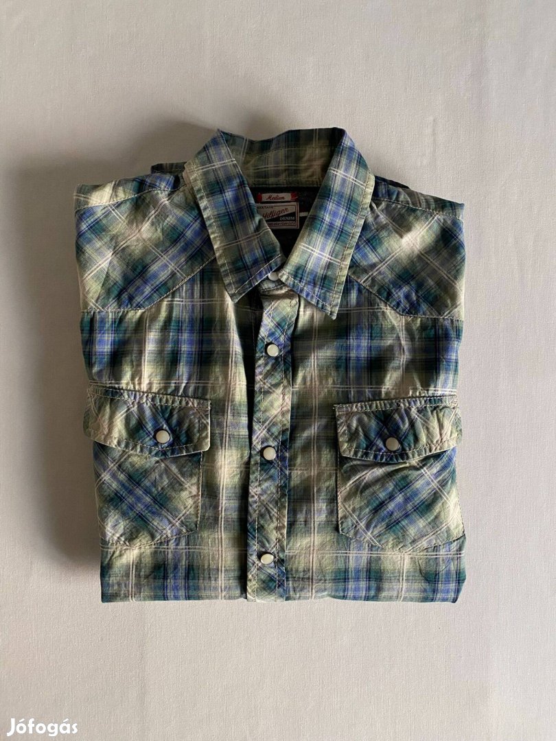 Eladó Tommy Hilfiger Denim férfi kockás ing, kék és világoszöld, kapcsos gombos, kiváló állapotú, M-es méretben.