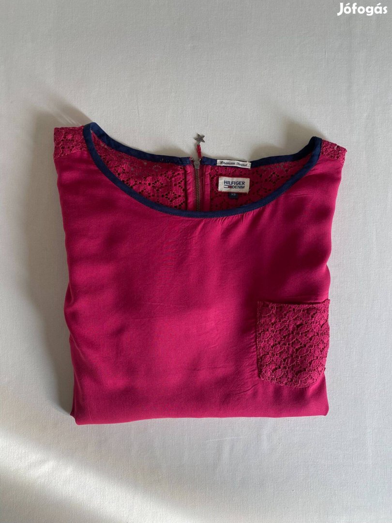 Eladó Tommy Hilfiger női blúz, ciklámen színű, ujja és a háta csipkés, címke kivágva, kiváló állapotú, XS-es méretben, de S-re is fittelhet.