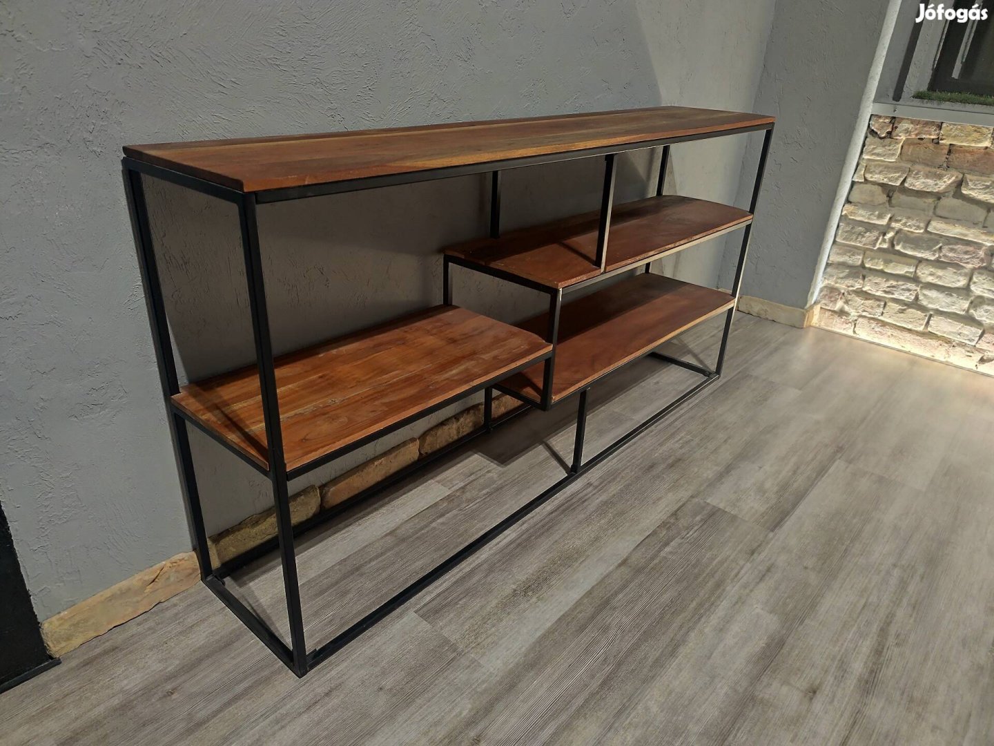 Tömör akácfa fém tv állvány könyves polc tálaló indusztriál