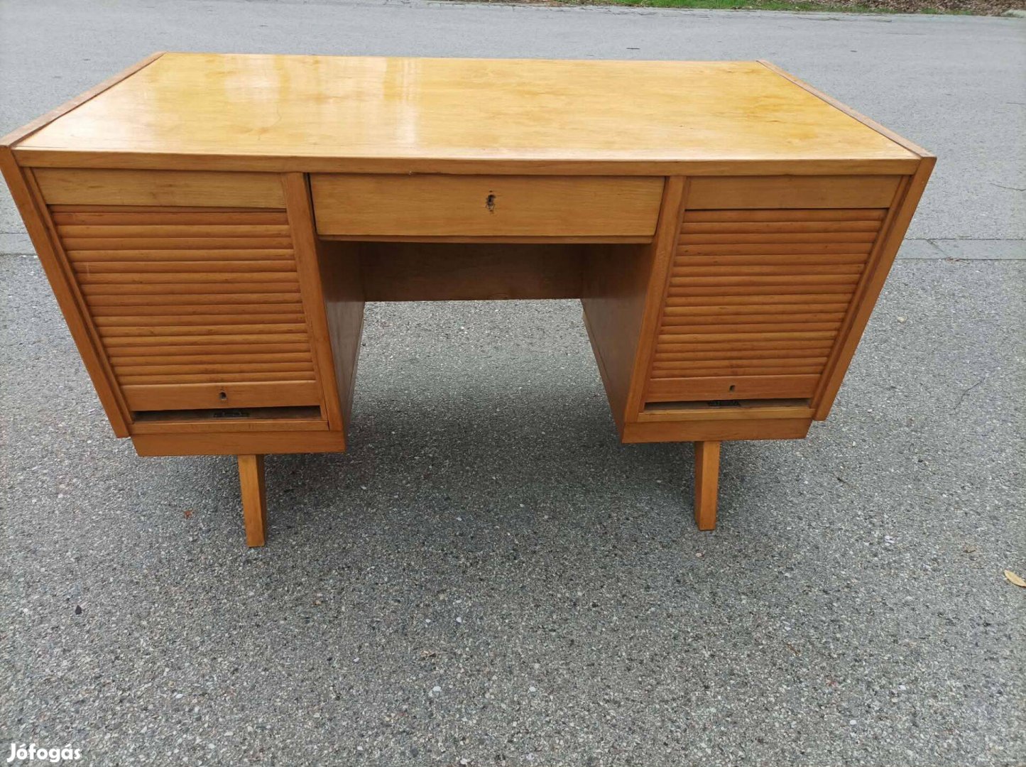 Mid-Century Modern stílusú, redőnyös íróasztal, mely az 1950- 60-as évekből származik.