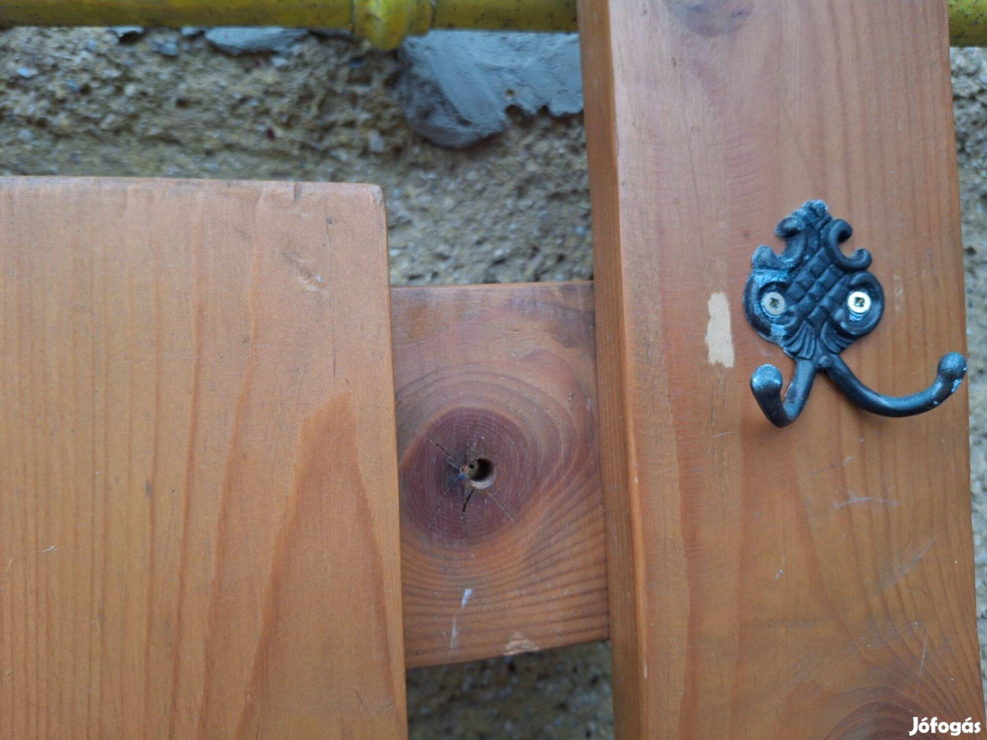 Fenyő lazúrral festett fa előszoba fal, a minimális kopásat fotóztam.