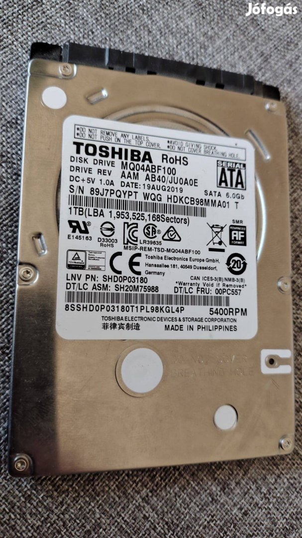 Eladó egy tökéletesen működő Toshiba Mobile Thin 1TB 5400rpm 128MB SATA3 (MQ04ABF100) HDD merevlemez.