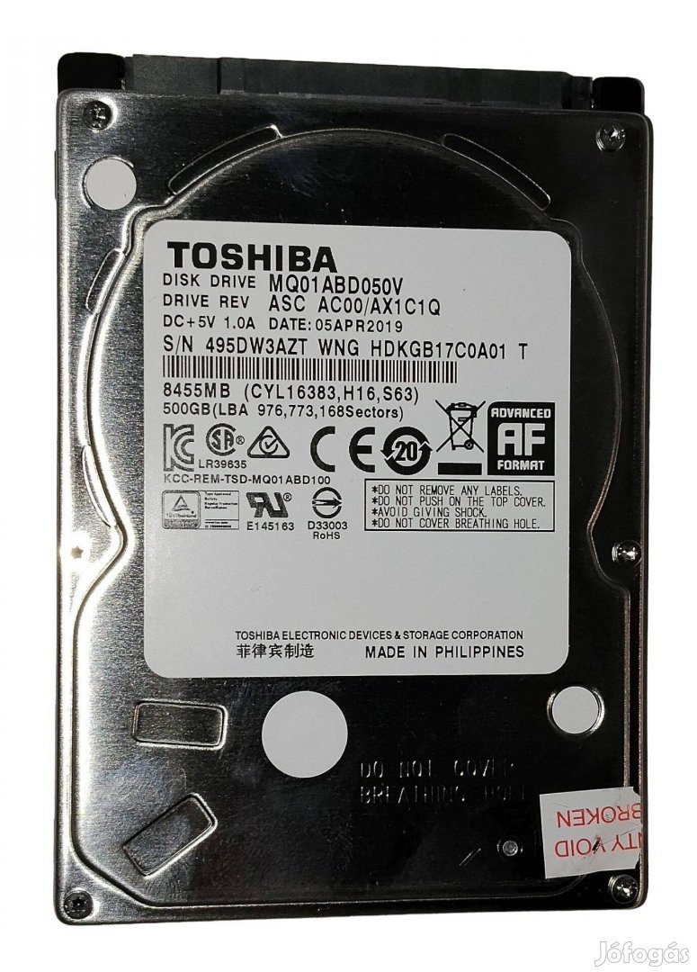 Toshiba 500GB laptop / notebook HDD merevlemez SATA 2.5" 100/100 #3AZT