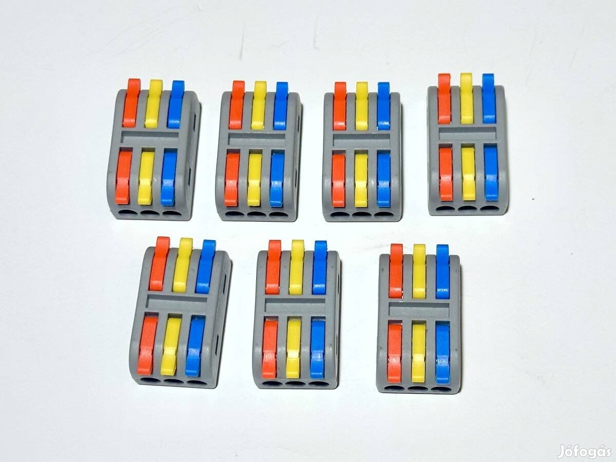 Eladó 5 db új 3 áramkörös, csavar nélküli vezetékösszekötő sorkapocs. Ára 180 Ft/db.