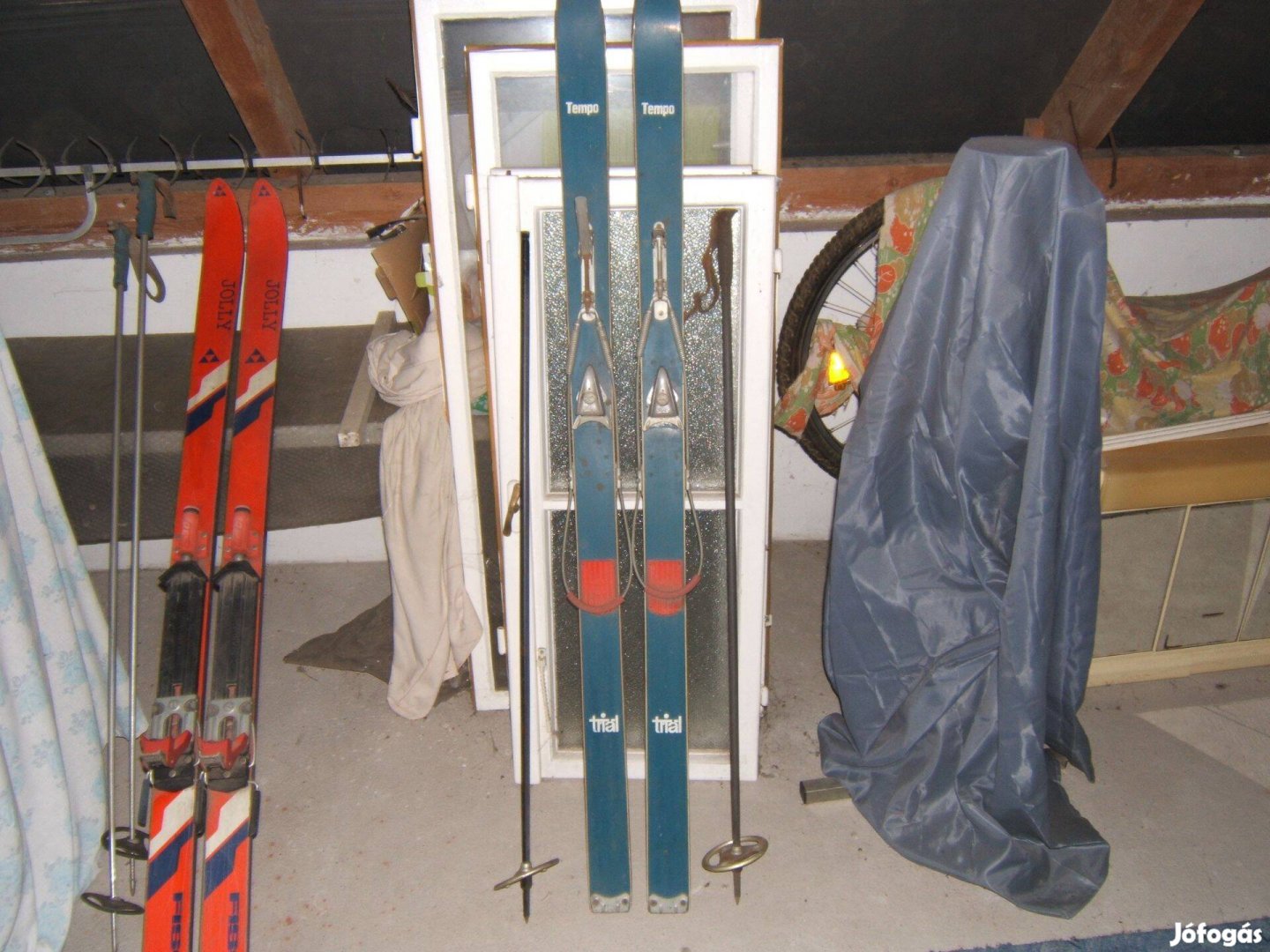 Eladó a képen látható Trial Tempo típusú gyerek síléc kötéssel.150cm hosszú.Az egyik botról hiányzik a markolat.