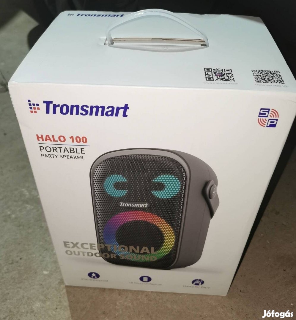 Ténylegesen B O N T A T L A N csomagolású Tronsmart Halo 100 típusú 3-utas hangrendszerű party hangszóró.