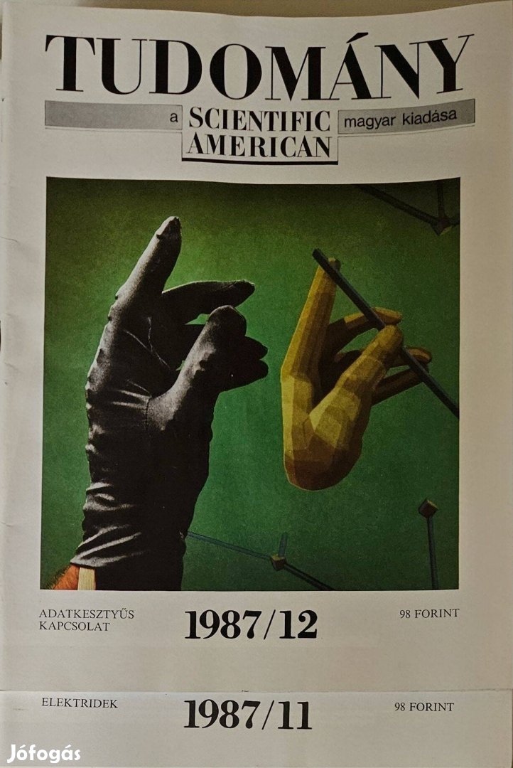 Eladó a Tudomány című folyóirat (Scientific American magyar kiadása) teljes 1987-es évfolyama. (Az 1986-os is megvan.)