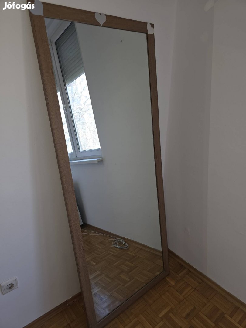 Eladó a képen látható, nagy méretű álló tükör fa kerettel. Letisztult, időtálló darab, amely tökéletes hálószobába, előszobába vagy gardróbba.