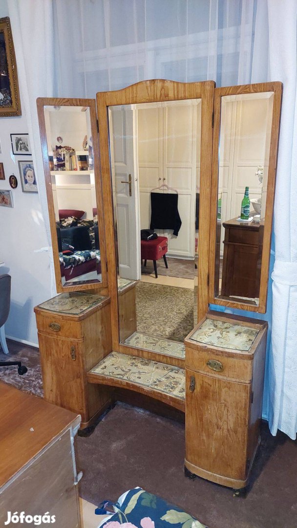 Antik fésülködő pipere bútor eladó a képeken látható állapotban. Személyes átvétellel, helye 16. kerület. Jó állapotú, az ára azért ilyen alacsony, mert eladni szeretném, nem árulni, és a helyére szükségünk van.