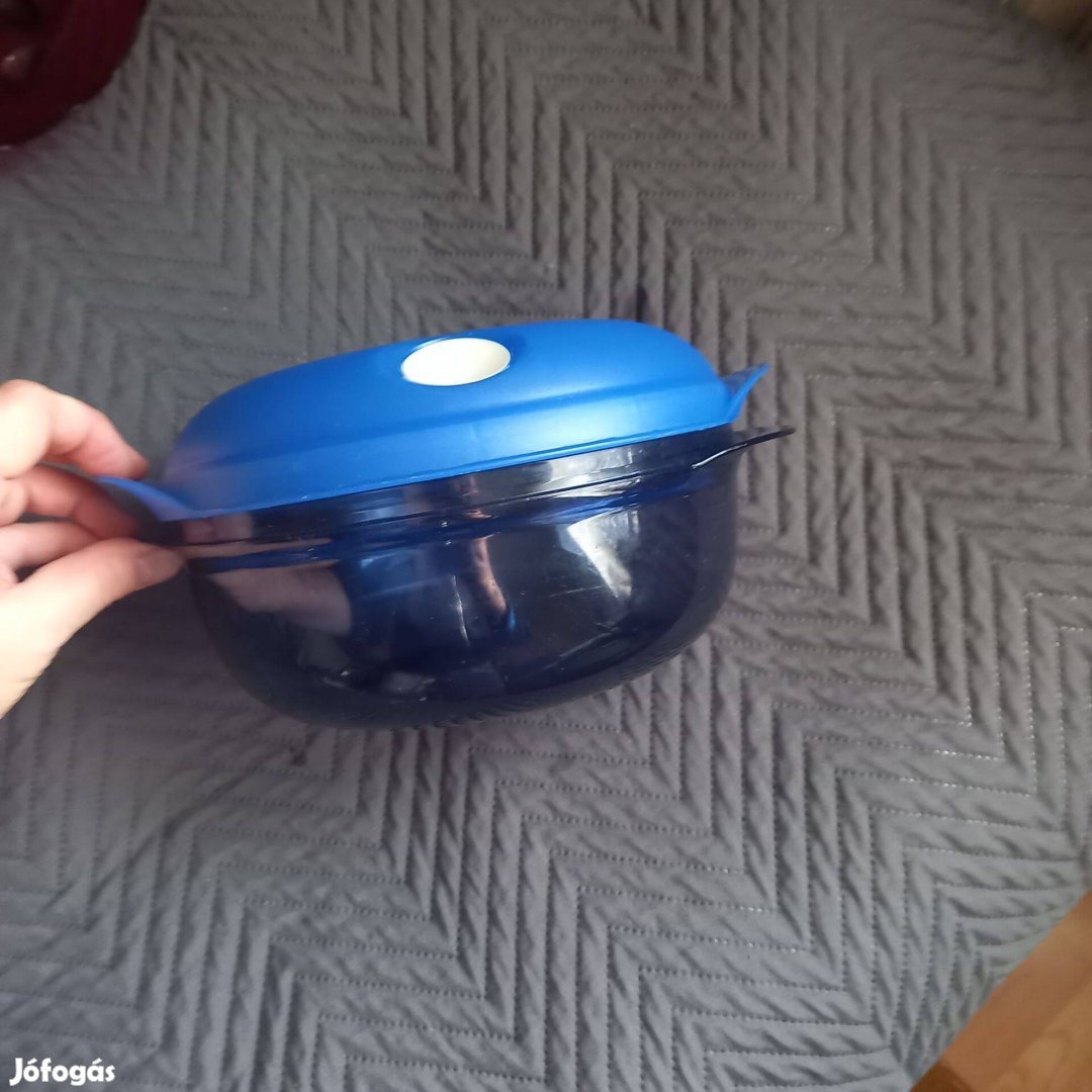 Tupperware 1.5 l szelepes főzőedény vagy tároló. Különleges formája lehetővé teszi, hogy keverés nélkül főzzünk veke a mikróban. Ha nem főzésre használjuk, akkor tárolásra is aklamas a jól zárható, pattinható fedeke és a szellőző dzelep miatt. Magassága fedővel: 12 cm,