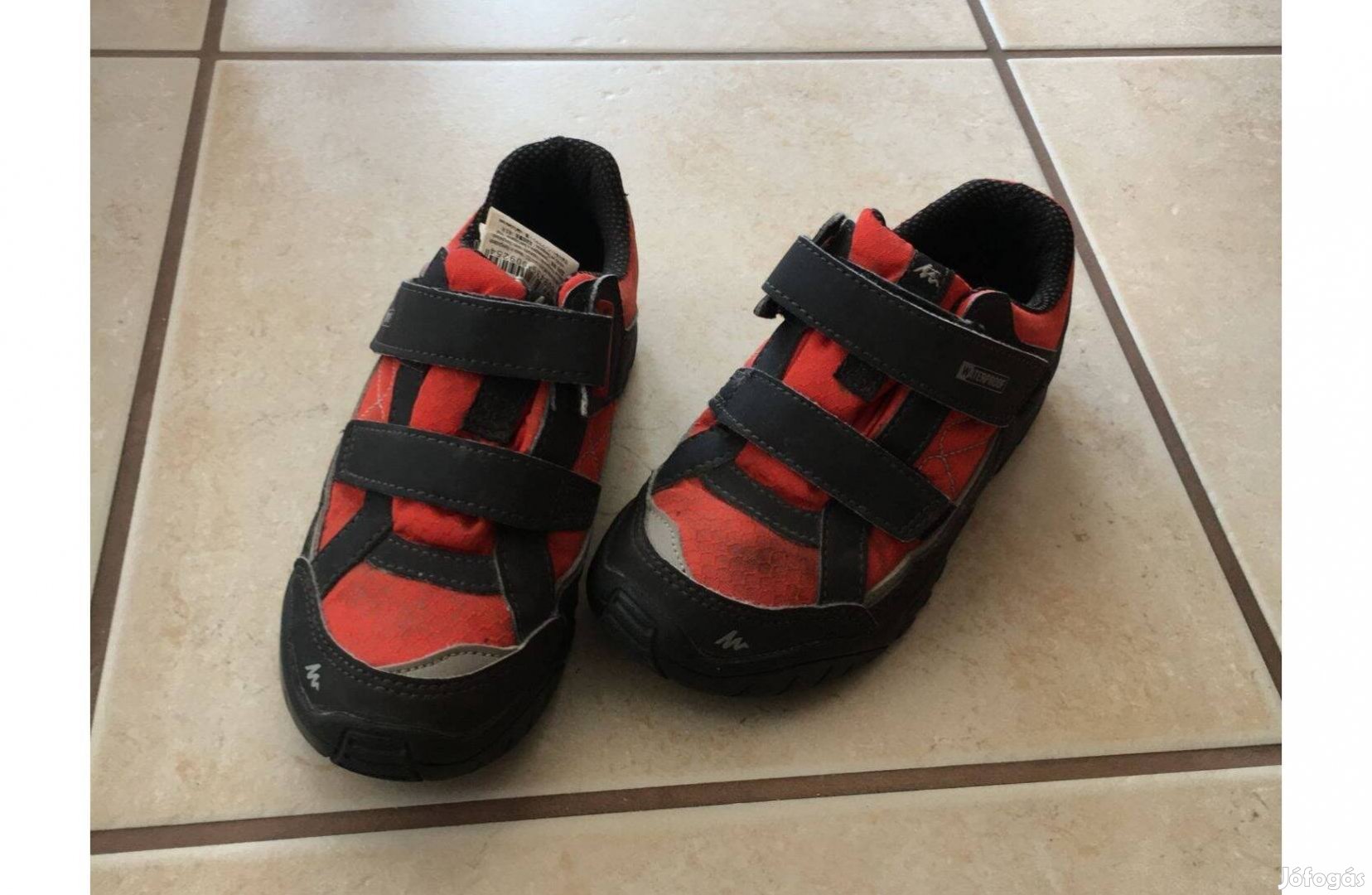Túracipő 29-es Quechua, vízhatlan, szuper túracipő újszerű, szürke-piros, tépőzáras, fűzős BTH:19cm