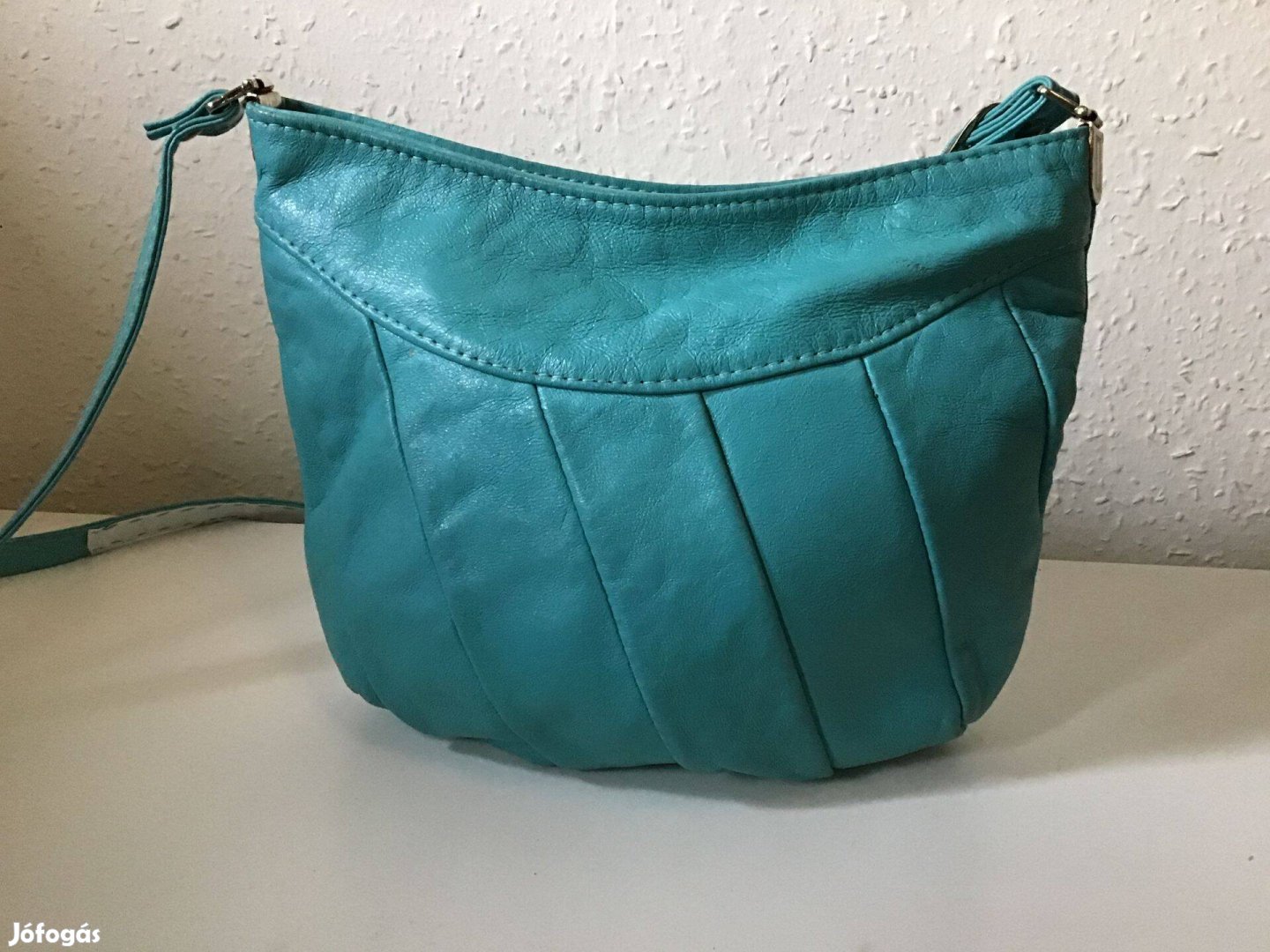 Türkiz, műbőr kistáska, retikül 25 cm x 22 cm