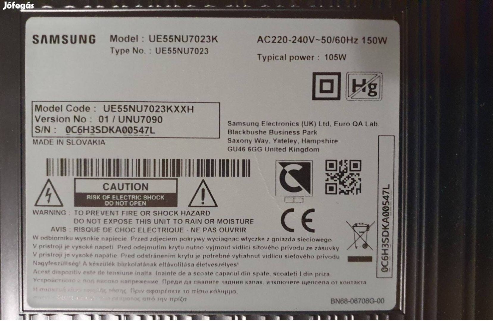 UE55NU7023K 4K Smart LED tv panelek alkatrésznek UE55NU7023