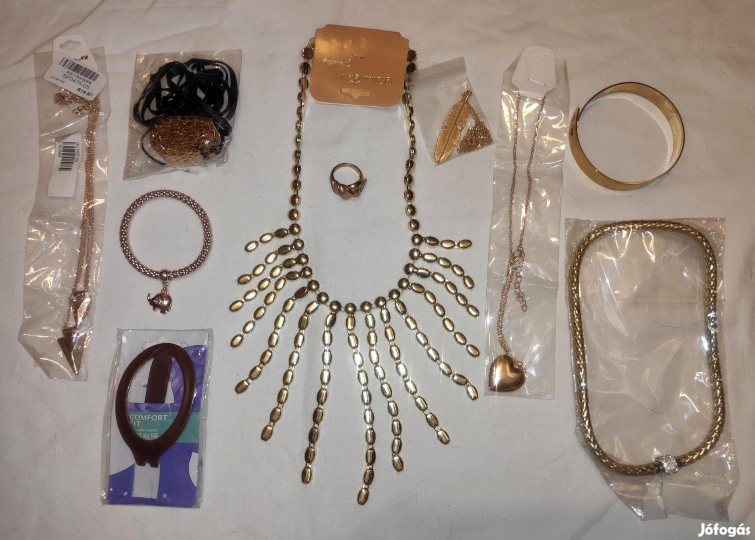 gyűrű, nyaklánc, karkötő, bizsu