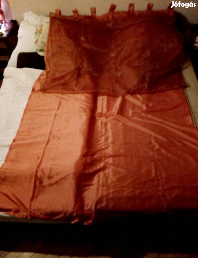 Eladó, egy vadonatúj, két részből álló, Organza + Taft Sötétítő, árnyékoló függöny. Alsó Organza része, átlátszó bordó, felső Taft része, narancs színű. A függöny teteje, 7 db bujtatóval van ellátva, rögzítés céljából.