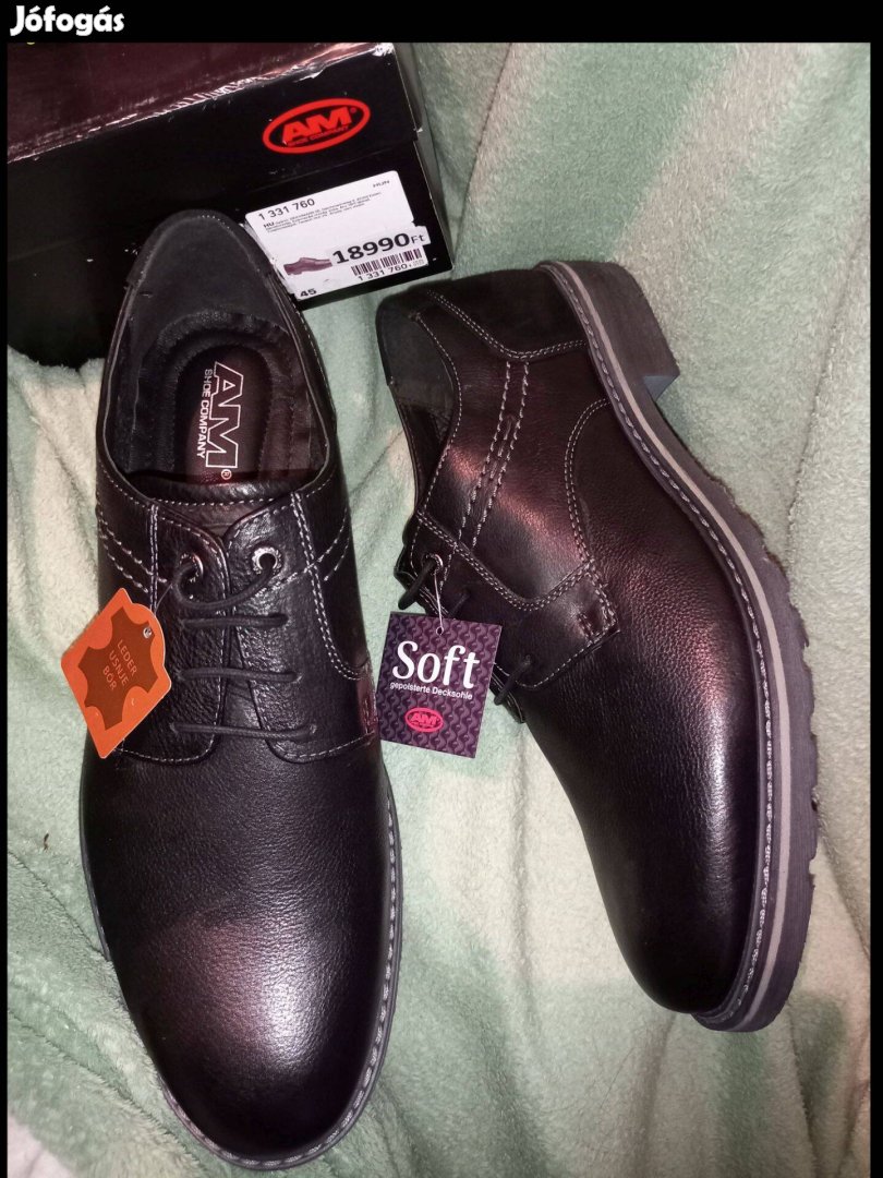 Új 45-ös bőr AM fekete alkalmi ünnepi elegáns cipő 14900ft