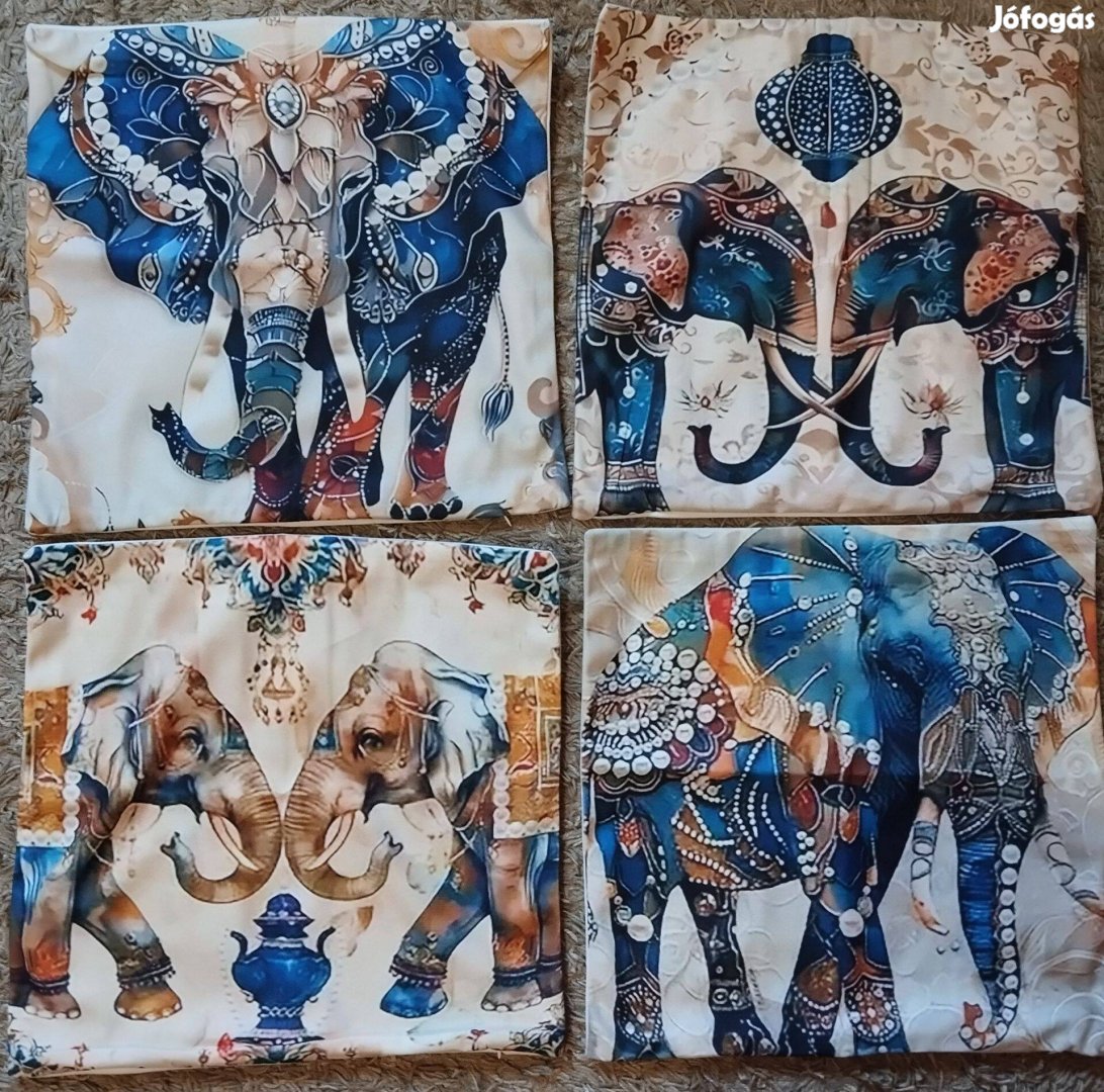 Új 4 db-os szett, elefánt díszpárnahuzat, cipzár, 45x45 cm