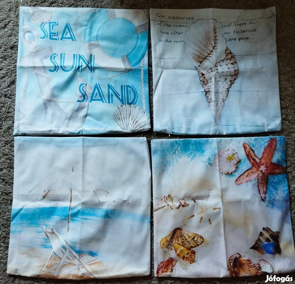 Új 4 db-os szett, tenger díszpárnahuzat, cipzár, 45x45 cm T6