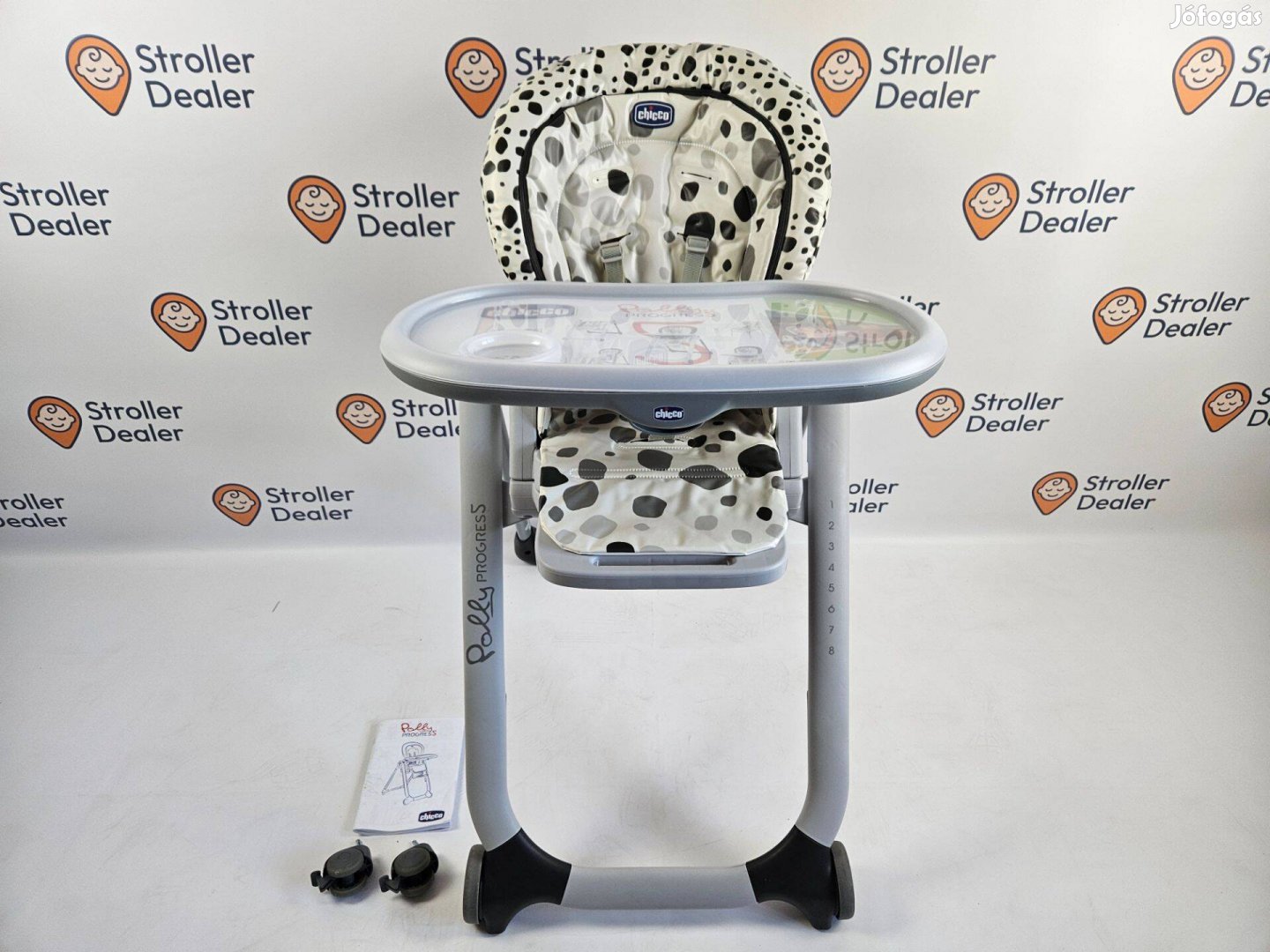 A Chicco Polly Progress 5 egy 5 az 1-ben etetőszék, amely a gyermek növekedésével együtt alakítható, így újszülött kortól akár 3 éves korig használható. Több funkcióban használható: újszülött pihenőszékként, klasszikus etetőszékként, asztalhoz tolható székként, valamint kényelmes és kompakt székmagasítóként. A 4 fokozatban dönthető háttámla, 8 magassági pozíció és állítható lábtartó biztosítja a kényelmet minden életkorban. Az 5 pontos biztonsági öv, a levehető dupla tálca és a könnyen tisztítható huzat praktikus megoldást nyújt a mindennapi használathoz.