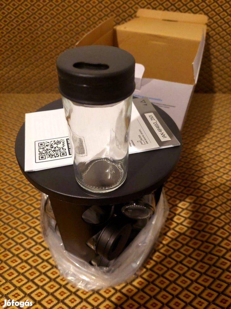 Új 10 részes forgó, 360°-ban elforgatható, elegáns design fűszertartó készlet 9 db egyenként 85ml-es üveg, praktikus szórófejes kupakkal.