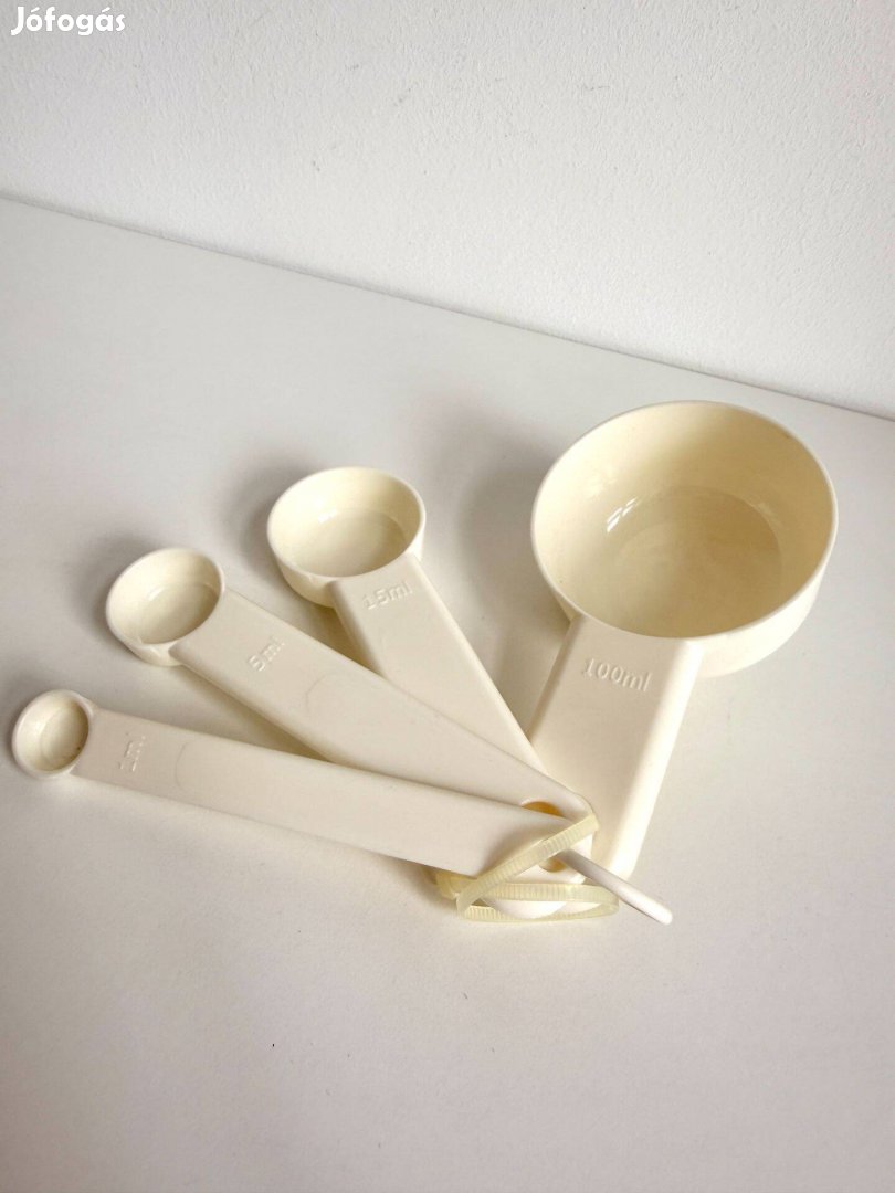 Vadonatúj, hibátlan állapotú, sosem használt krémszínű / fehér, négy darabos mérőkanál szett. Ezek a kanalak a legtöbb recepthez elegek, a poharak egymásba tehetők, így nem foglalnak sok helyet és egy kampóra is felakaszthatók. Segít kiadagolni a száraz és folyékony alapanyagokat sütés & főzés közben.