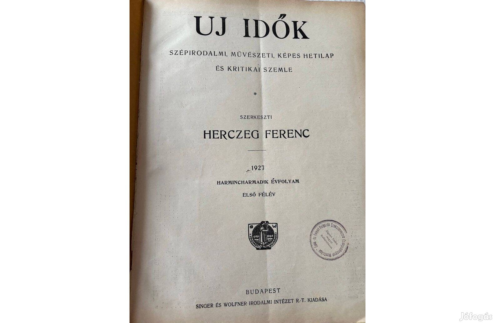 Új Idők 1927. A hetilap XXXIII. évfolyama első, teljes féléve, 26 szám.