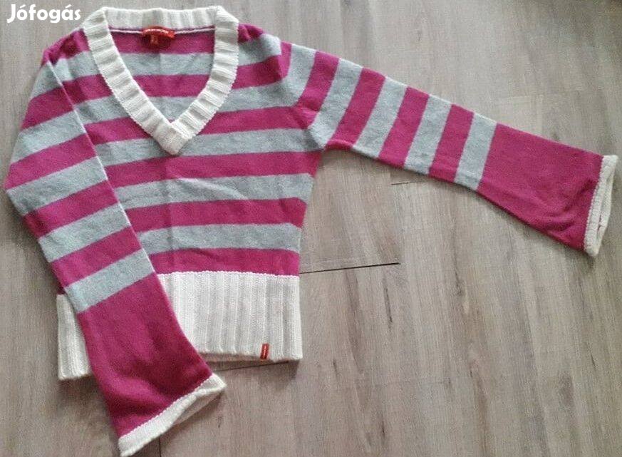 Nem használt, rózsaszín-szürke-fehér csíkos, hibátlan állapotú pulóver (nem bolyhos, nem szöszös).