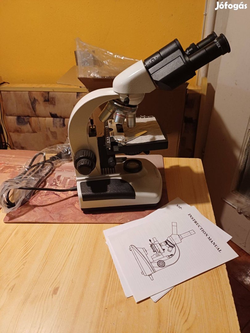 Eladó ez a mikroszkóp, pár éve vettem, de gyakorlatilag új, kb 2 üzemóra van benne, még por sem érte, dobozában volt tartva. 40x-100x-400x-1000x-es nagyítás. Budapest XVIII.kerületében megnézhető. Egy ajándék mikroszkópos könyvet adok hozzá. Az ár fix. Kérem, aki alkudni akar, az ne keressen! Köszönöm.
