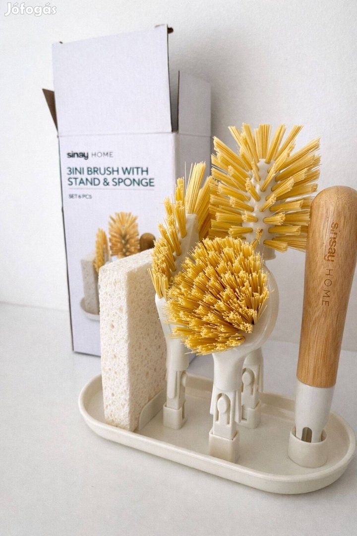 Vadonatúj, hibátlan állapotú, sosem használt krémszínű, 6 részes mosogató készlet. Tartalmaz 1 db tároló tálcát, 1 db mosogatószivacsot, 1 db fanyelet, melyre 3 db különböző kefefej csatolható.