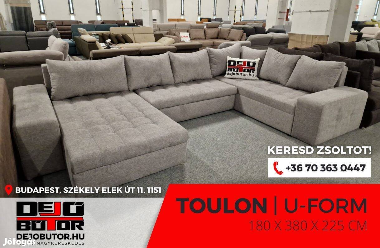 Új Toulon grey kanapé ülőgarnitúra 380x180x225 cm ágyazható ualak 405.000 Ft készlet ár