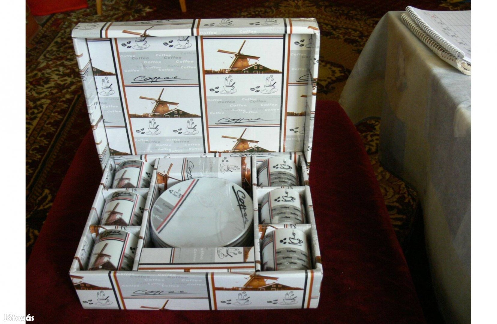 Új, 6 személyes porcelán kávés készlet dobozában