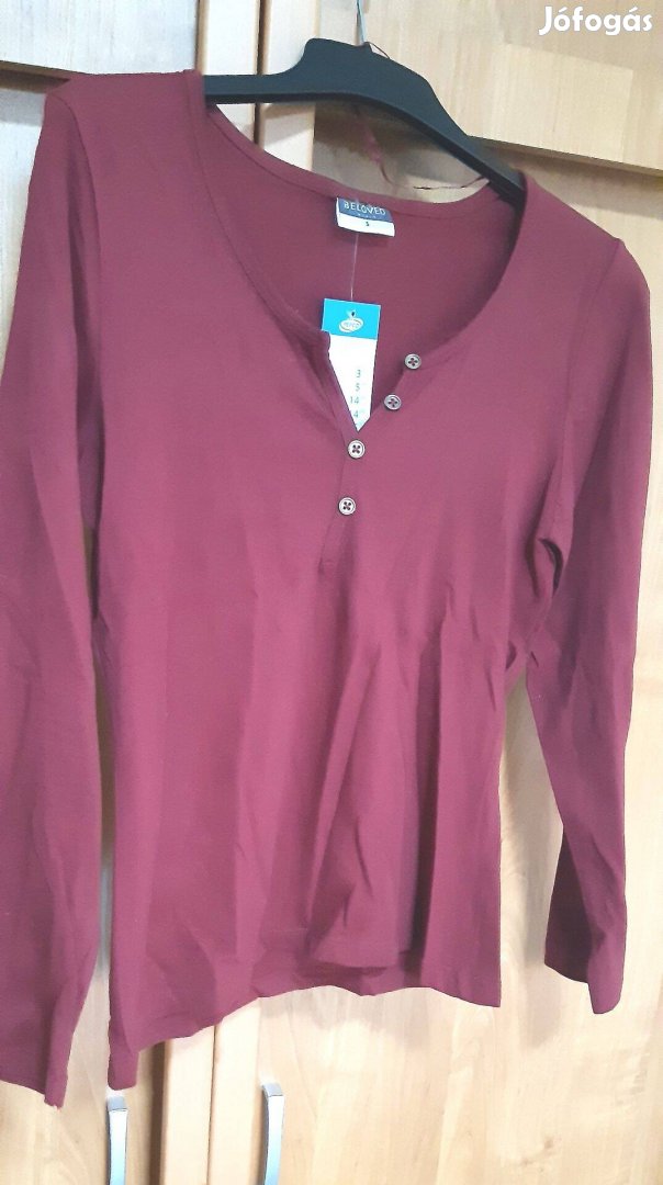 Új! Bordó, gombos, hosszú ujjú, pamut pulóver S méretben eladó