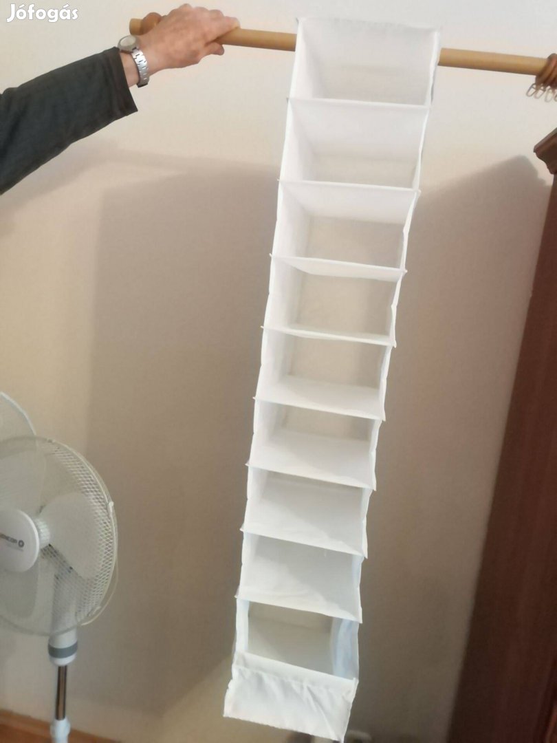 Praktikus, erős tépőzárral, 9 fakkos, szekrénybe is akasztható ruha rendszerező. Akár fehérneműknek, játékok tárolására is alkalmas. Bpesten bárhol átvehető a 13.kerületben és az 1-es villamos, valamint a 3-as metró vonalán az üzleti ár töredékéért.