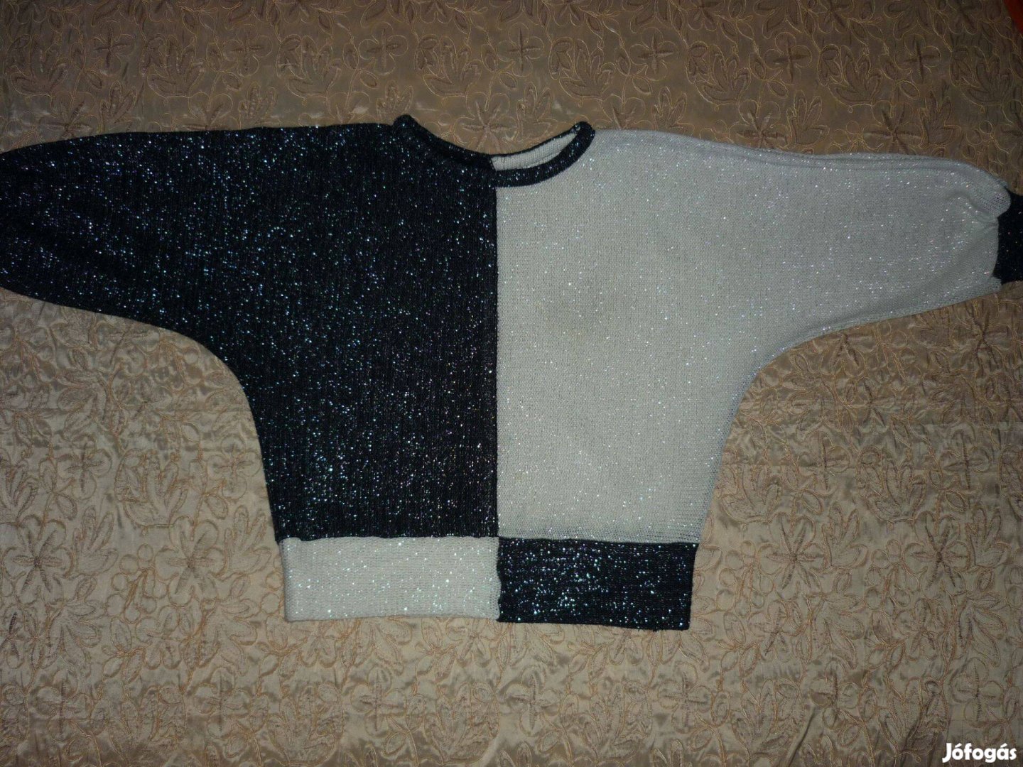Új - Női pulóver - fekete-fehér ezüst szálas pulóver 38-40-42