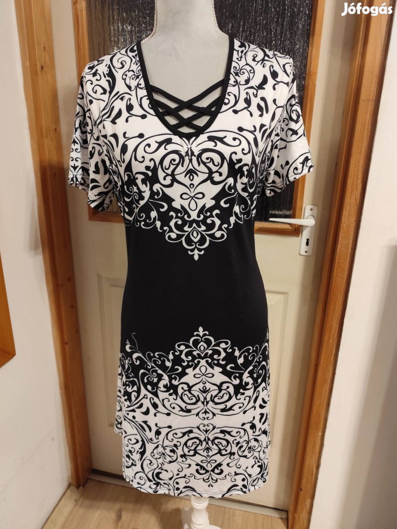 Új, alkalmi női ruha, 48-as méret, fekete-fehér